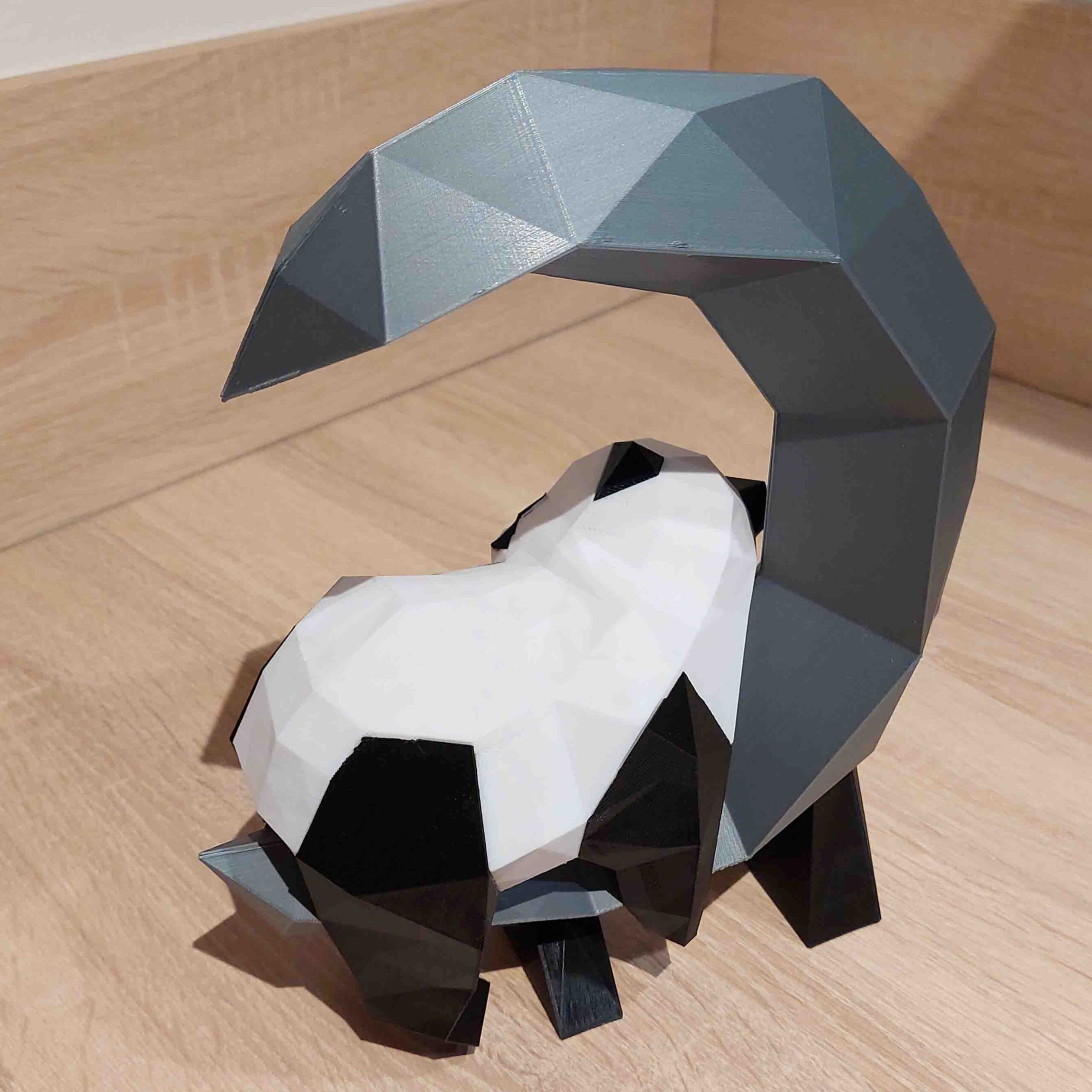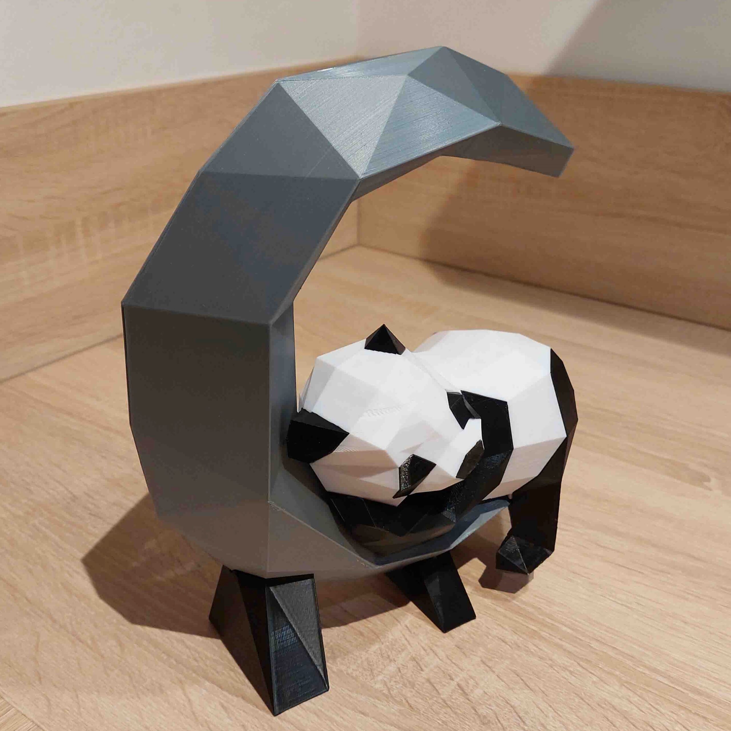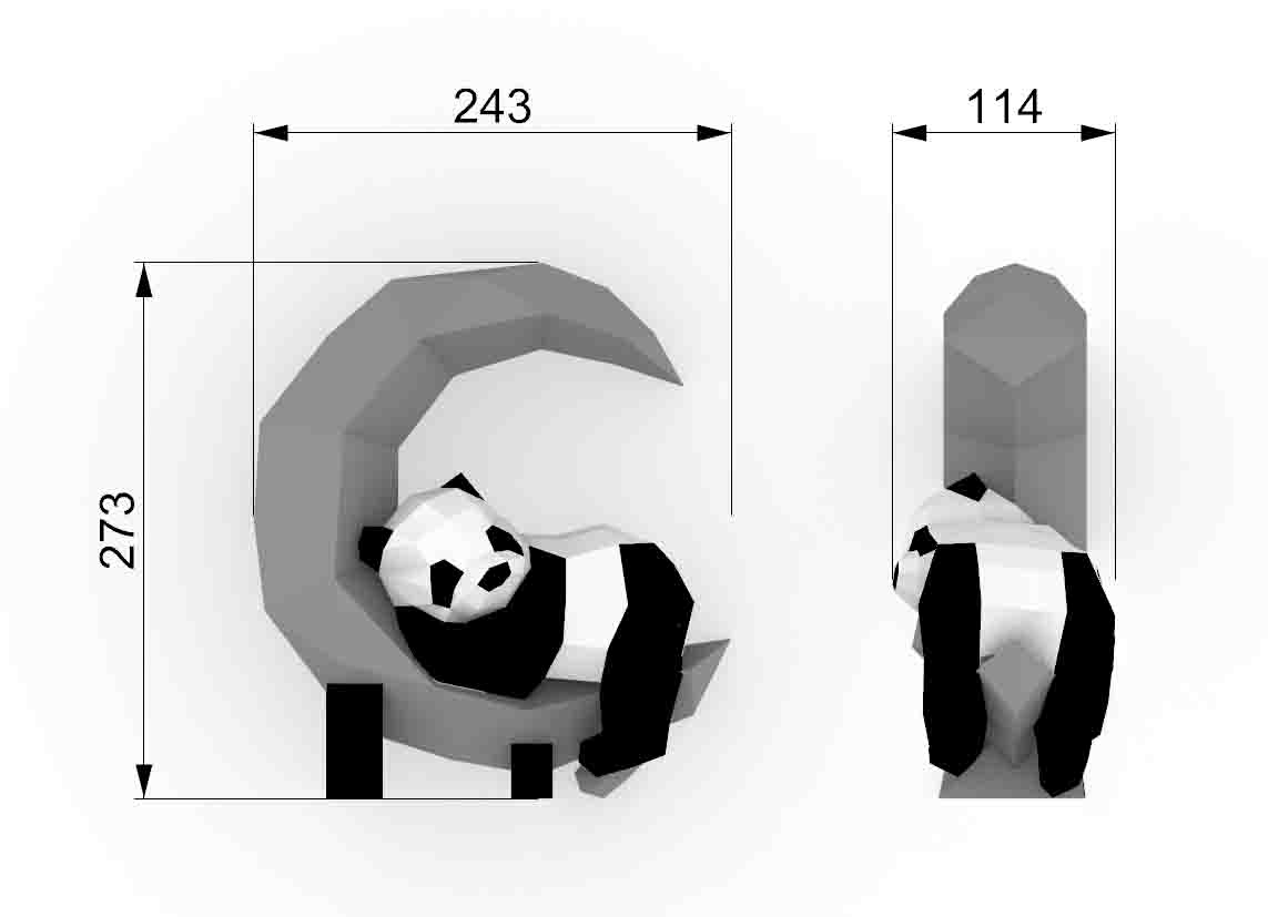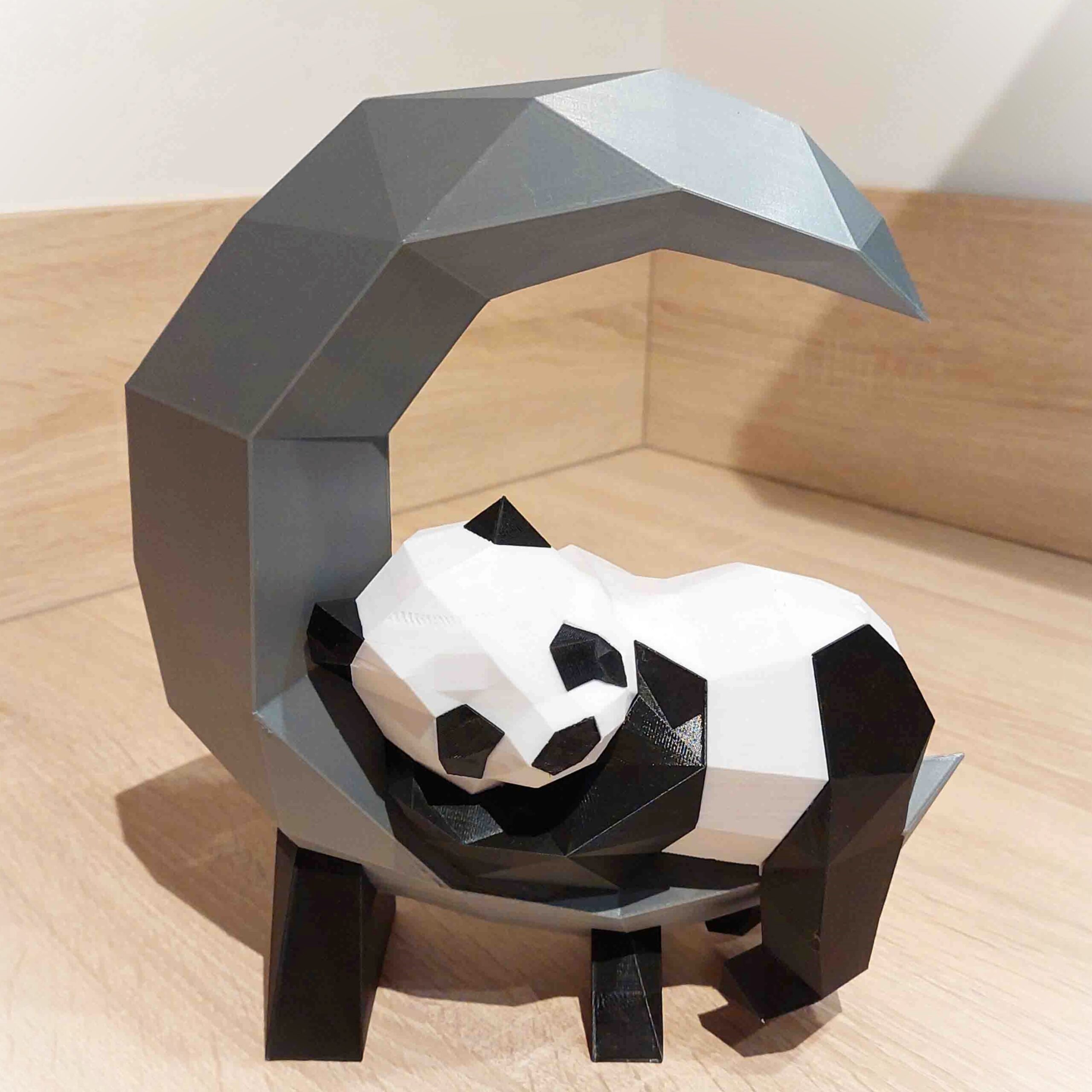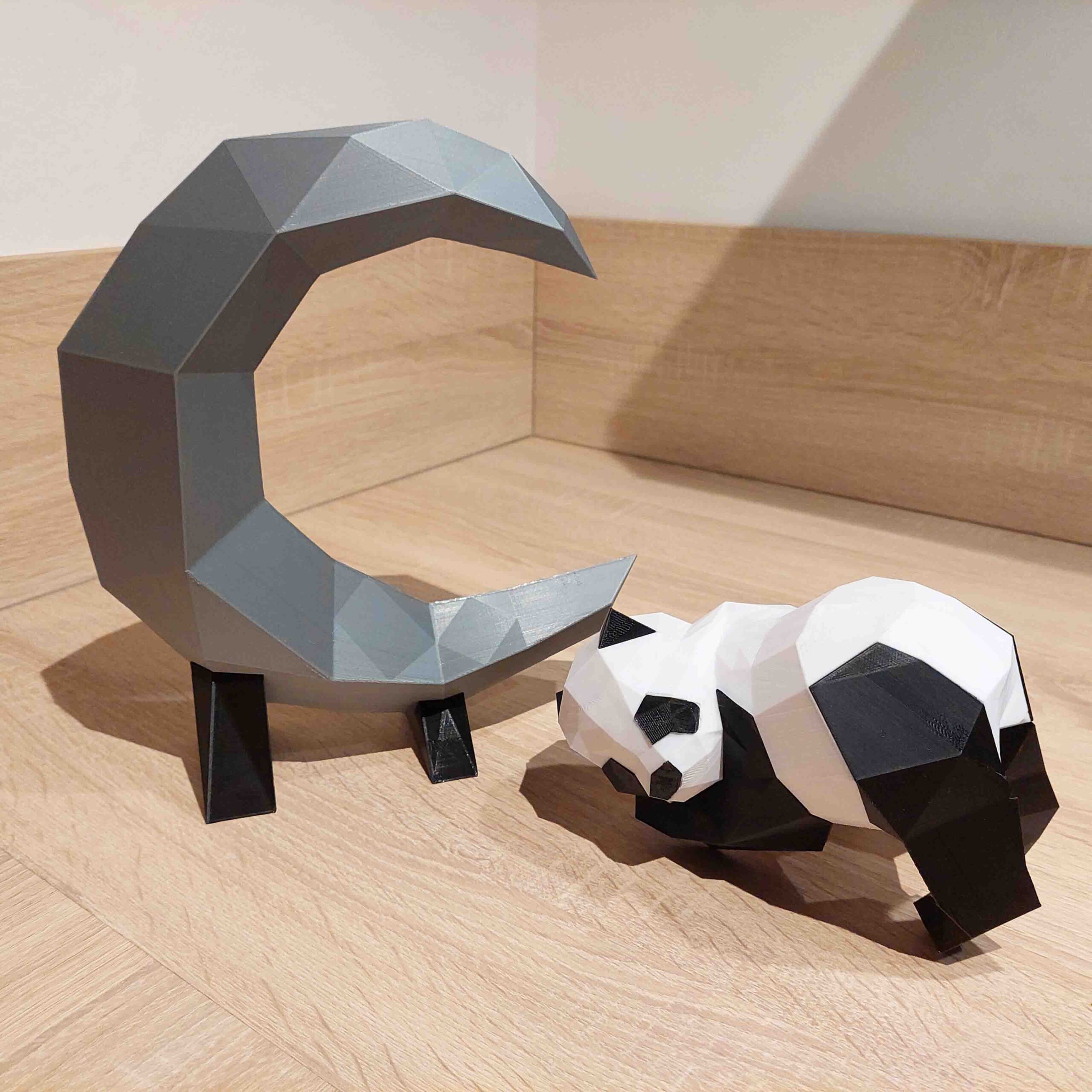 Décoration intérieur d’un panda allongé sur sa lune en volume conçu en plastique végétal ( PLA ) par impression 3D.