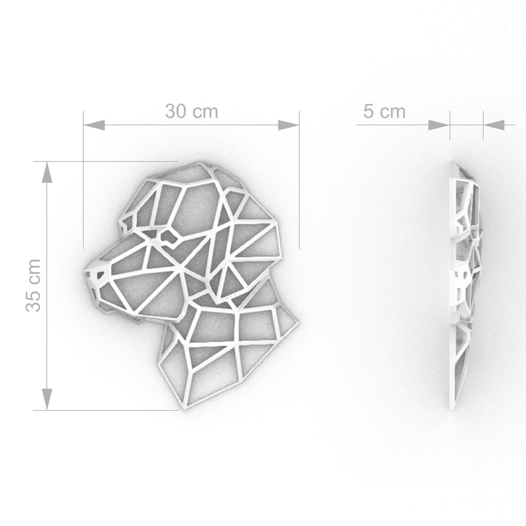 Avec cette décoration murale de chien en volume, 3Design Product montre encore une fois sa maîtrise de l’impression 3D et son expertise dans la création d’objets de décoration innovants et écologiques.