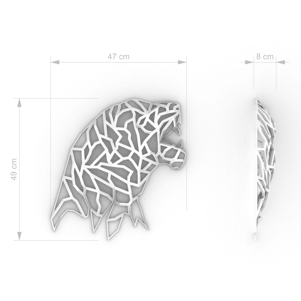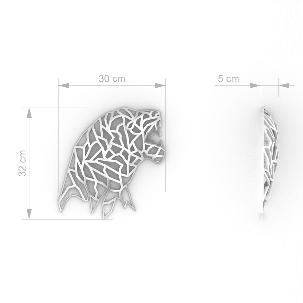 Laissez-vous séduire par notre décoration murale de félin qui ouvre la gueule de façon agressive. Cette pièce maîtresse de notre collection de décoration en volume est un véritable chef-d’œuvre de l’impression 3D FDM. Le félin semble prêt à bondir de votre mur pour chasser sa proie.